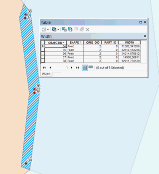 Output point features with calculated width values can be used to find minimum, maximum values, and obtain other statistical values using the standard ArcGIS means. That is, you can locate places with specific value on the map. For example, using the search request you can find and display points within specified width range, or points where polygon width is more than specified distance etc.