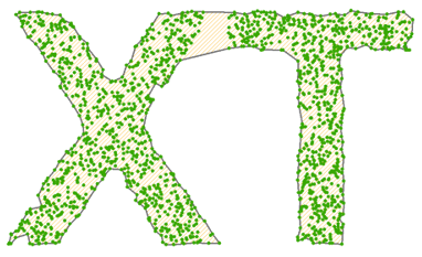 The concavity level depends on the level of detail varying from 0% to 100%. The level of detail 0% means that the hull shape is close to convex hull, but may still not fully coincide with it. With the detail value 100% the empty areas inside the hull will be excluded as much as possible, but they may reside because of the high density of the input points or in cases when boundaries of the input polylines and polygons build a barrier for the concave hull.